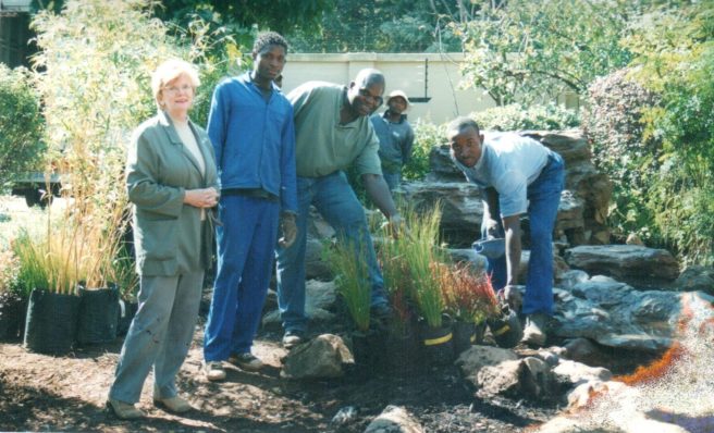 After moving in, I spent months cutting back and cleaning before I could plant and redesign. A few years later I began to collect rocks for the water feature I desired. At the same time we changed all the steel framed windows and doors to wood
